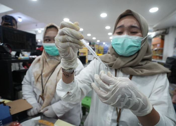 Uji sampel makanan saat sidak makanan dan minuman jelang Nataru di sejumlah tempat perbelanjaan di Kota Mojokerto-Foto : Kominfo Kota Mojokerto-