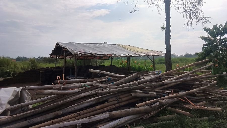 Cungkup terbuat dari tiang bambu dan atap baliho itu diketahui merupakan hasil swadaya masyarakat dan perangkat Desa Gemekan. Kondisi material yang tidak layak membuat struktur pelindung mudah runtuh.