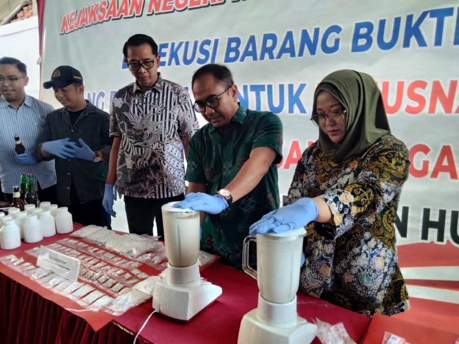 Kejari Kabupaten Mojokerto Musnahkan Barang Bukti Perkara Narkotika Sabu Hingga Pil Double L