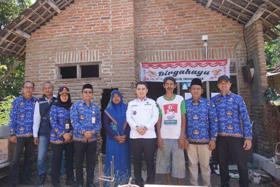 Bupati Mojokerto Muhammad Al Barra meninjau pembangunan rumah layak huni-Foto : Kominfo Pemkab Mojokerto-
