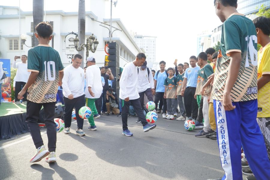 Surabaya, diswaymojokerto.id - Kick Off Piala Dunia 2026 dengan tema Bola Gembira resmi digelar di Jalan Tunjungan, tepatnya di depan Hotel Majapahit Surabaya, Minggu 1 Februari 2026 Kegiatan ini menandai dimulainya siaran FIFA World Cup 2026 oleh TVRI sebagai official broadcast di Indonesia.