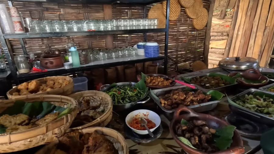 Menu makanan, sayuran dan lauk pauk serta makanan khas lainnya yang dijual di Warung Sego Lego Trawas-Foto : Raka Magang-