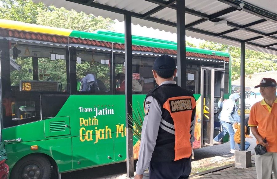 Bus Trans Jatim melayani penumpang sekitar Gerbang Kertasusila- Foto : dok. UPT P3 LLAJ Mojokerto Dishub Jawa Timur-