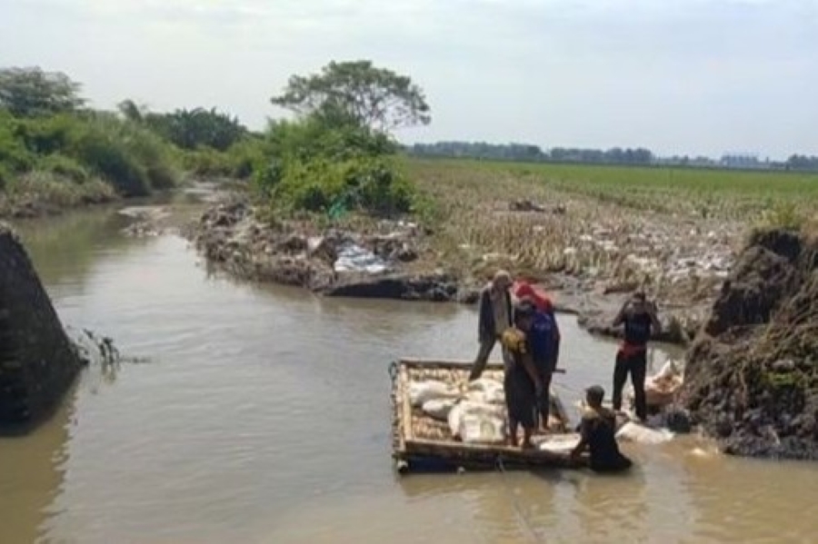 Rois menyebutkan, jumbo bag dan sandbag diangkut ke lokasi putusnya tanggul menggunakan rakit karena lokasinya memang sulit dijangkau. "Jumbo bag per buah ukuran 1m3 / 1 ton yang diangkut kearah lokasi tanggul jebol," imbuhnya.