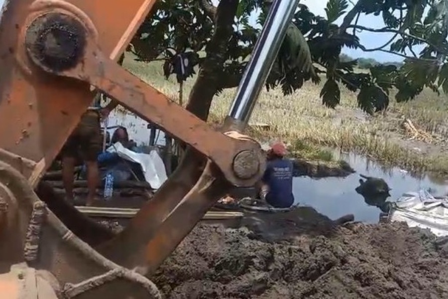 Alat berat diketahkan untuk menutup tanggul jebol tapi terkendala lokasi yang tidak bisa dijangkau alat berat-dok PUPR Kabupaten Mojokerto - ISM Mojokerto for Disway Mojokerto-