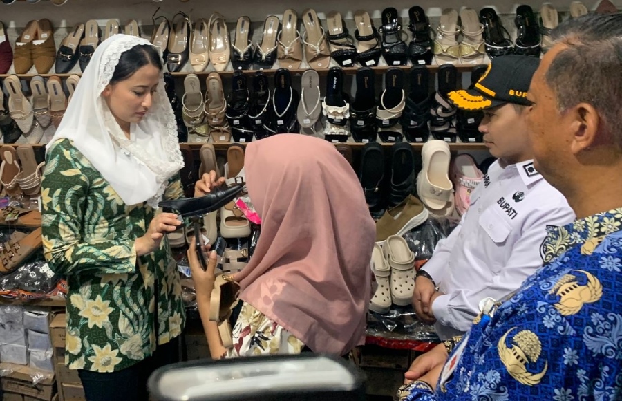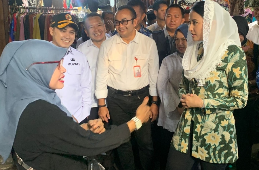 Wakil Menteri Perdagangan, Dyah Roro Esti menunjungi Pasar raya Mojosari untuk memantau harga bahan pokok dan melakukan dialog dengan pedagang.-andung - disway mojokerto-