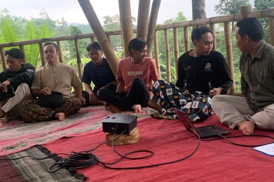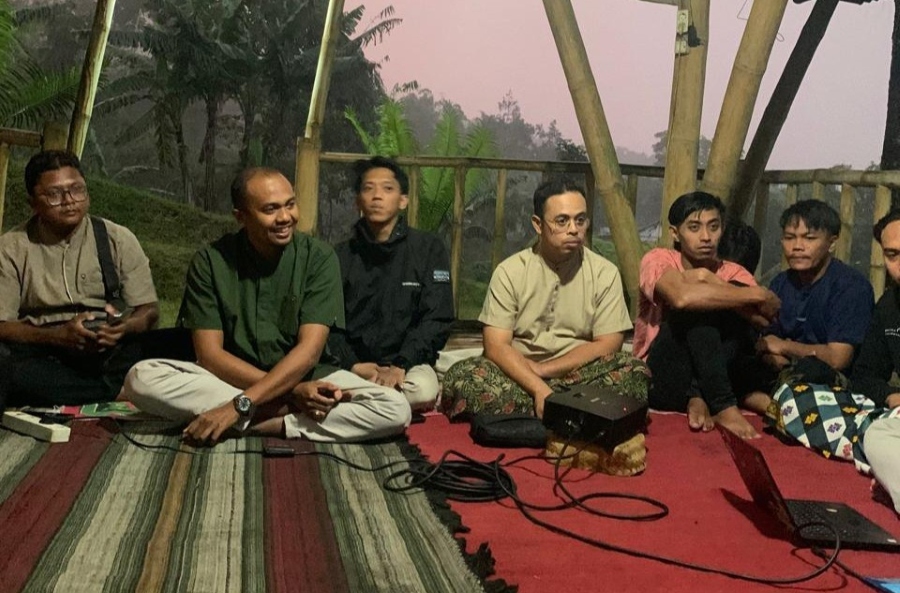 Naif, dari Bumdes Belik, Kecamatan Trawas bersama pegiat lingkungan dalam saresehan penyelamatan air di Desa Claket, Kecamatan Pacet-andung - disway mojokerto-