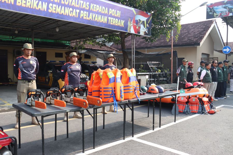 Hadapi Potensi Bencana Hidrometeorologi, Polres Mojokerto Kota Apel Kesiapsiagaan Tanggap Darurat Bencana