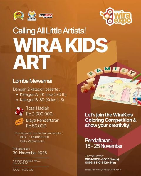 Selain Lala Widy, panitia juga mengundang Cak Nuris yang akan tampil spesial di Wira Expo 2025. Cak Nuris dikenal sebagai pendongeng anak dari Kampung Dongeng Jawa Timur. ‘’Cak Nuris akan tampil untuk anak-anak yang ikut lomba mewarnai saya jamin akan menarik bukan hanya untuk anak-anak tapi juga untuk seluruh yang hadir di Sunrise Mall,’’ kata Mega