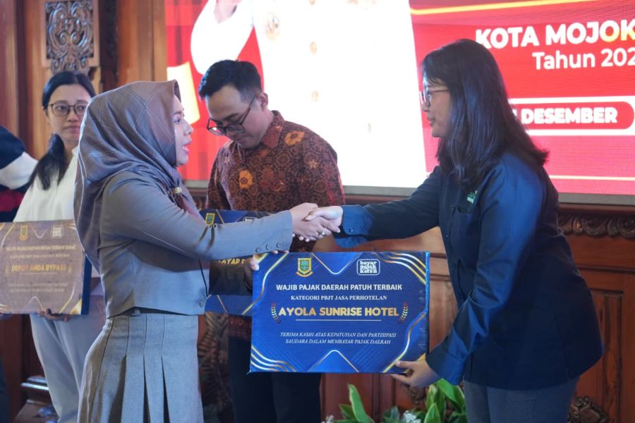 Selain memberikan apresiasi bagi para wajib pajak PBB P2, pada momen ini, Pemkot Mojokerto juga memberikan penghargaan kepada wajib pajak daerah dengan prestasi terbaik dalam hal kepatuhan dan ketepatan waktu pembayaran Pajak Barang Jasa Tertentu (PBJT).