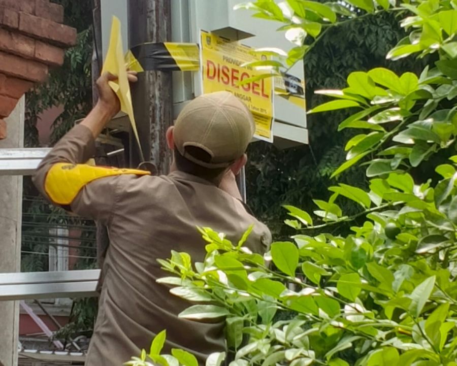 Stasiun kabel optik yang disegel oleh Satpol PP Kota Mojokerto-Foto : Kominfo Kota Mojokerto-