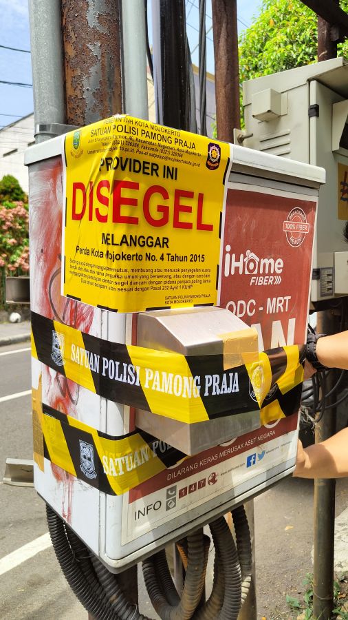 Penyegelan ODC -MRT milik Indihome-Foto : Kominfo Kota Mojokerto-