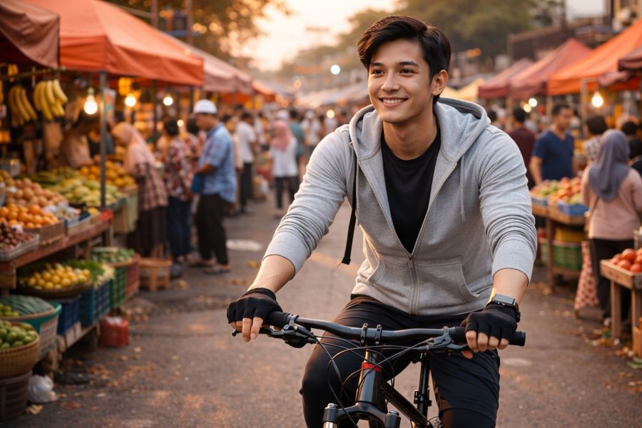 Olah raga ringan seperti bersepeda santai bisa dilakukan meski sedang puasa-Foto : Diyaulhaq Magang (AI)-