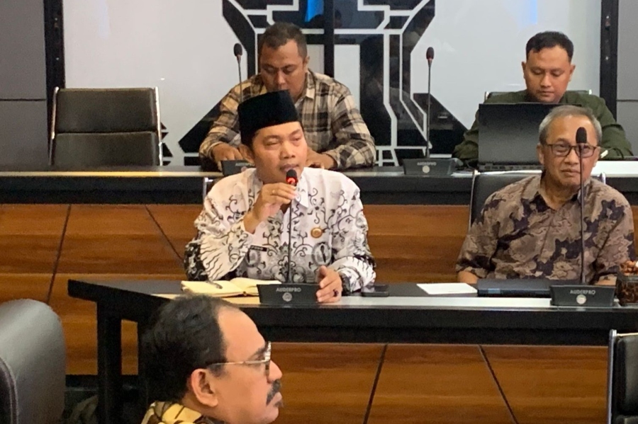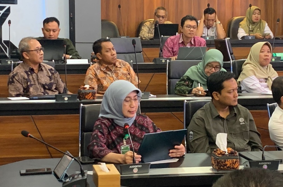 Direktur PEPDAS Kementerian Kehuatnan, Nurul Ifitah, dalam audiensi dengan Bupati Mojokerto tentang progres Proyek Mewlafor di ruang SBK Pemkab Mojokerto.-andung - disway mojokerto-