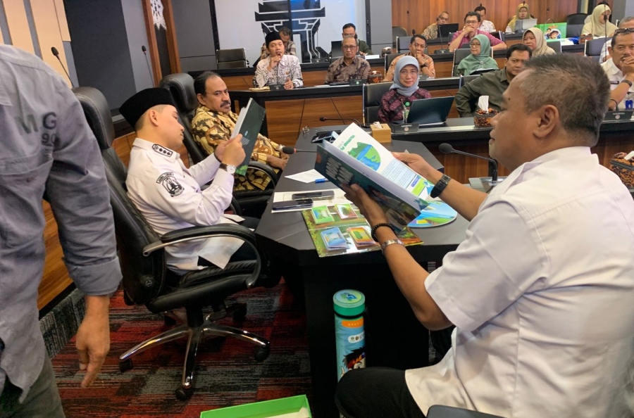 Bupati Mojokerto, Muhammad Albarraa membuka modul ajar Brantas Box di sela-sela audiensi Proyek Mewlafor di ruang SBK Pemkab Mojokerto-andung - disway mojokerto-