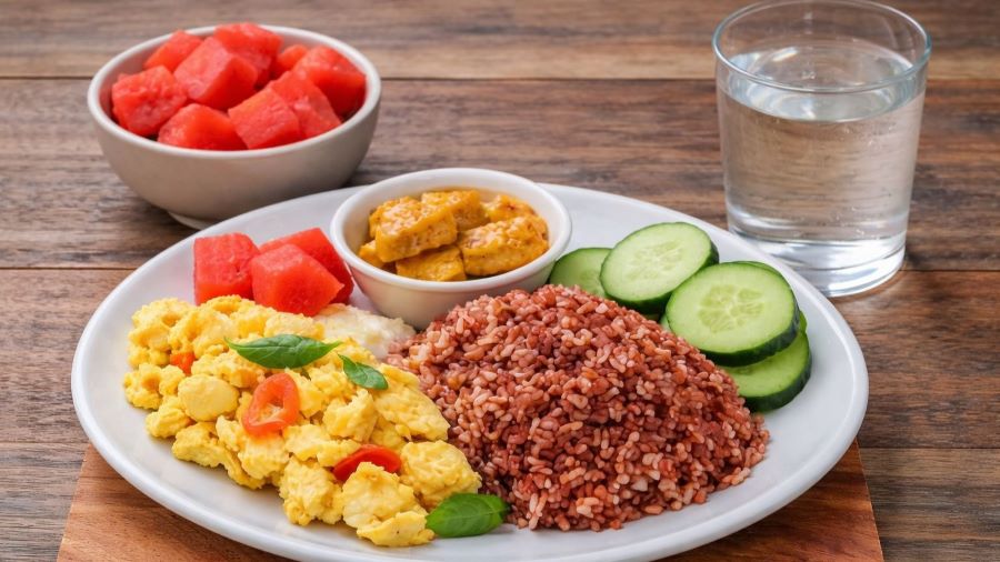 Salah satu kunci utama adalah memperhatikan asupan saat sahur. Pilih makanan yang mengandung karbohidrat kompleks seperti nasi merah, roti gandum, atau oatmeal karena lebih lama dicerna tubuh sehingga energi bertahan lebih lama.