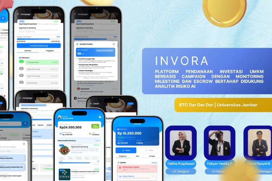 Melalui INVORA, tambahnya, tim ingin menciptakan sistem pendanaan yang tidak hanya memberikan modal, tetapi juga memastikan penggunaannya terkontrol dan berdampak nyata. ‘’Ini makin memudahkan mengelola investaisinya dengan aman,’’ sahutnya.