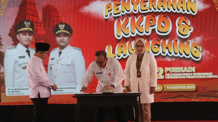 Acara yang digelar di Pendopo Graha Maja Tama Pemkab Mojokerto tersebut, selain prosesi penyerahan KKPD dan launching SP2D Online, Bupati juga meresmikan sistem PURNADI (Pelayanan Surat Penghentian Pembayaran Digital).