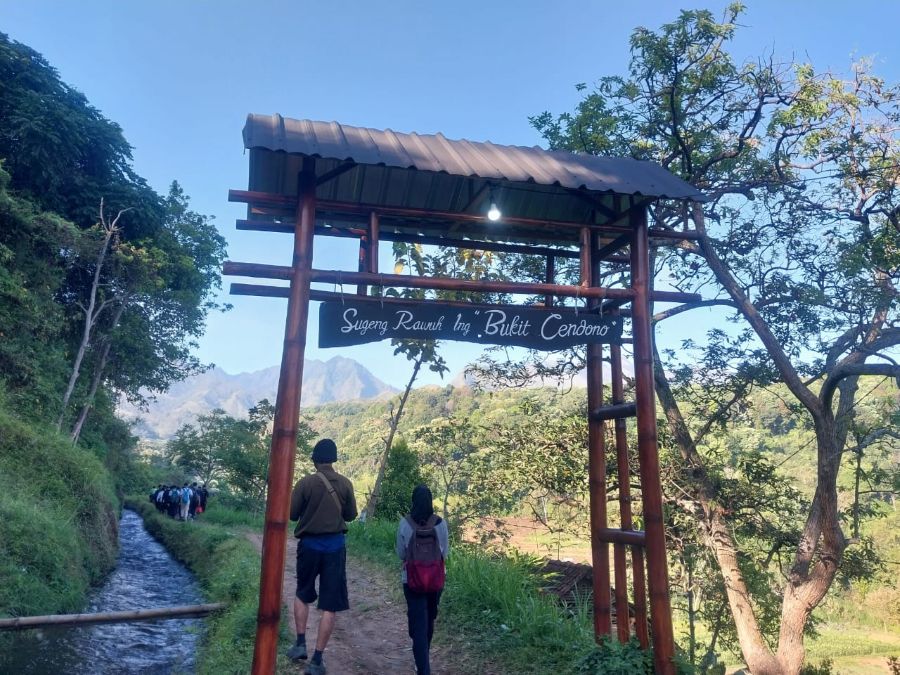 Jika ingin mengeksplore Puncak Cendoro sembari menikmati sensasi keindahannya, bisa diawali dari gerbang bambu bertuliskan “Sugeng Rawuh ing Bukit Cendono”, seolah menyambut para pendaki dengan keramahan khas pedesaan. Dari jalur ini, panorama Gunung Arjuno-Welirang mulai tampak gagah di kejauhan, menambah semangat para pengunjung yang datang.