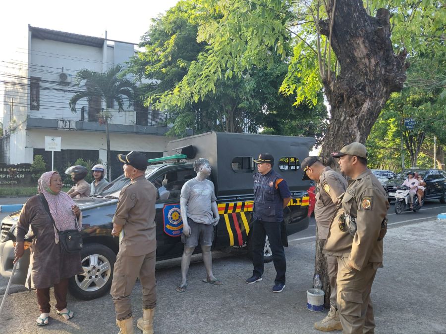 Selain Taman Lalu Lintas, patroli juga dilakukan di sejumlah titik lain. Di Simpang Empat Awang-Awang Mojosari, petugas mendapati satu pengemis disabilitas dan satu manusia silver.