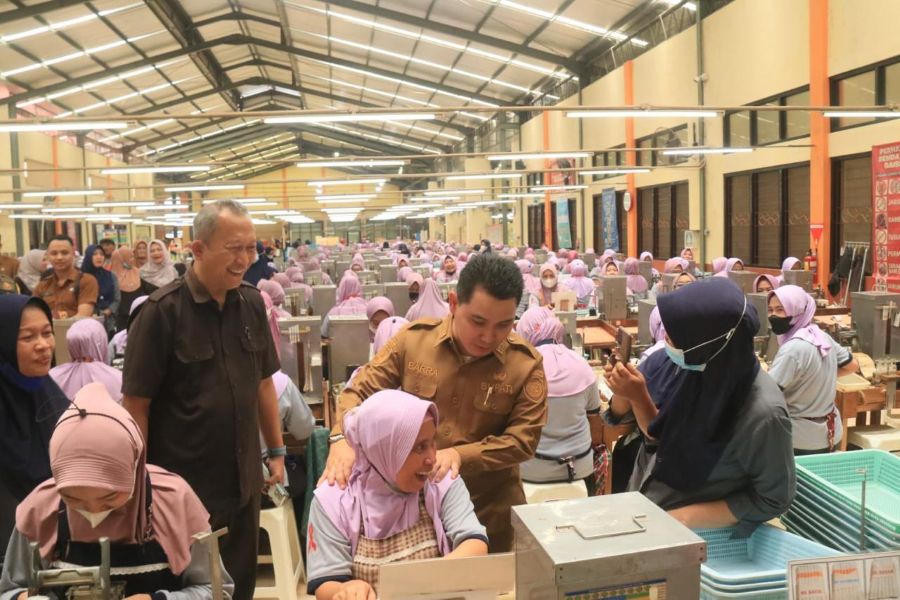 Bupati Mojokerto Muhammad Al Barra berbincang dengan para pekerja -Foto : Kominfo Pemkab Mojokerto-