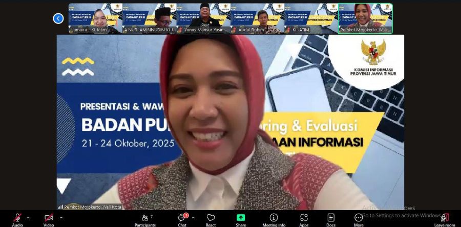 Melalui sambungan daring bersama jajaran Komisioner KI Jawa Timur pada Kamis 23 Oktober 2025 wali kota yang akrab disapa Ning Ita memaparkan berbagai upaya dan inovasi yang dilakukanPemkot Mojokerto dalam hal keterbukaan informasi publik.