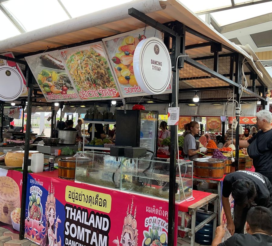 Jika dirasa kurang puas dengan hanya mencicip hidangan yang 'nyaman', makanan ekstrem seperti dancing shrimp juga tersedia untuk dicoba. Udang berukuran kecil yang disantap hidup-hidup dengan balutan bumbu pedas-asam khas Thailand ini banyak diburu pengunjung yang ingin merasakan sensasi unik sekaligus menuntaskan rasa penasaran.