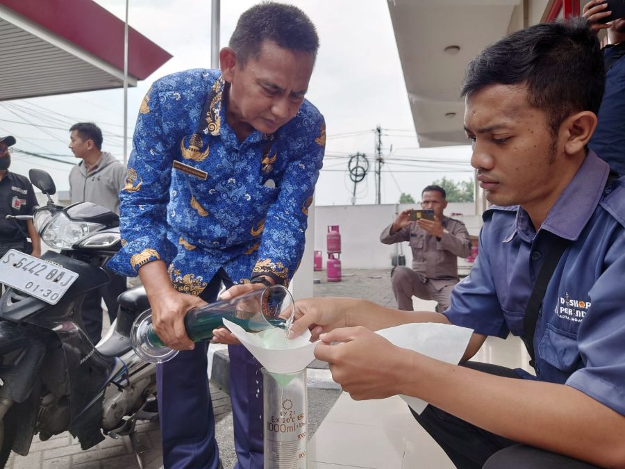 "Secara visual sudah kami cek kondisi BBM jenis Pertalite aman mulai dari kejernihan, tera, dan kadar air didalam masing - masing tangki SPBU-nya tidak ditemukan campuran antara bahan bakar dengan bahan lain, juga tidak ditemukan agregat campuran lain, dan sudah kami tes juga," jelasnya.