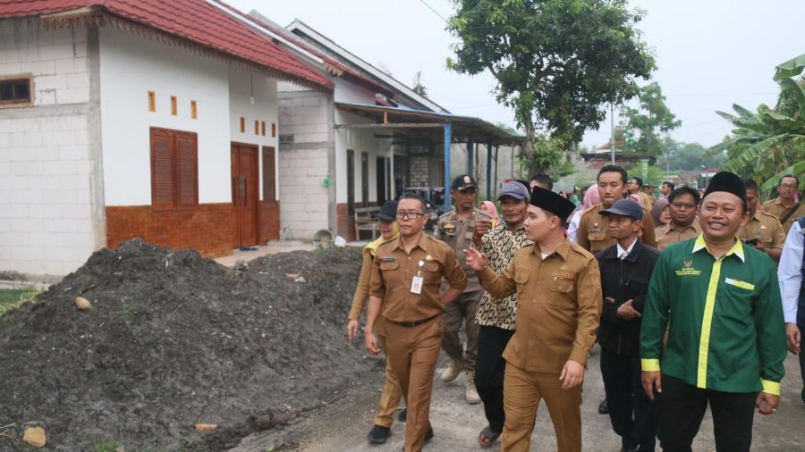 Selain melakukan peletakan batu pertama, Bupati yang akrab disapa Gus Barra itu juga meninjau langsung progres pembangunan rumah-rumah warga penerima bantuan di sekitar lokasi.